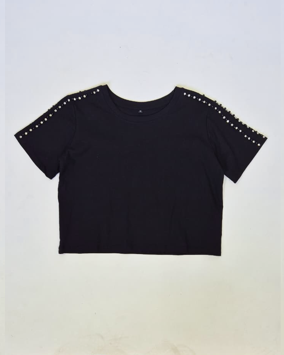 El Top Negro tiene Strass y Perlas Negras.