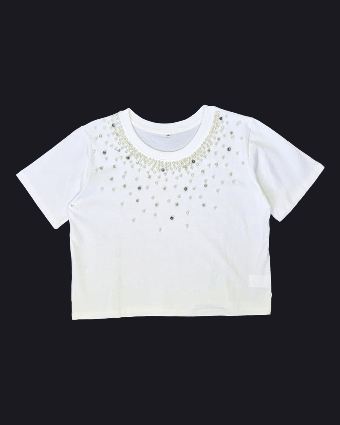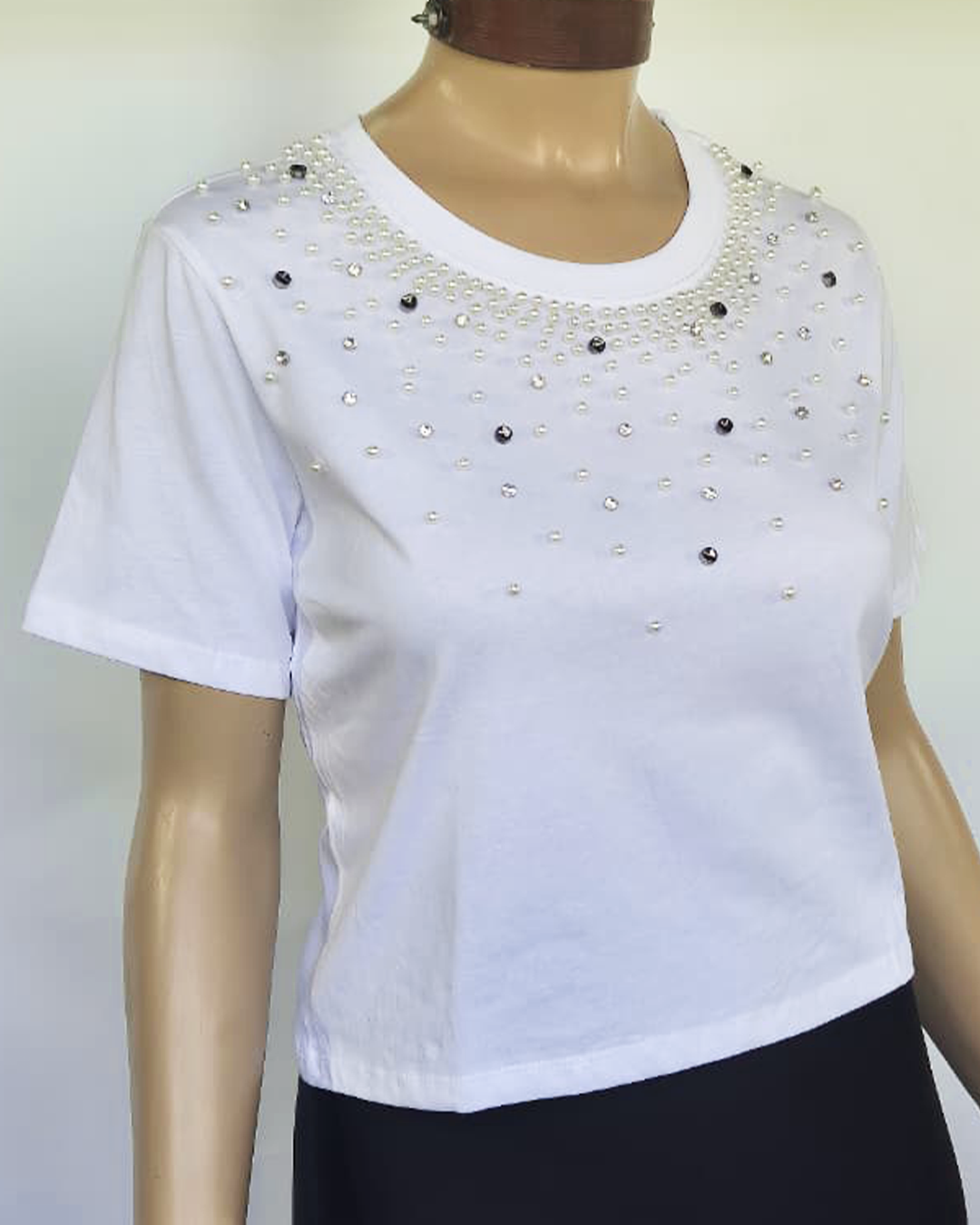 Crop Top Algodón 002 Cuello Perlas y Tachas
