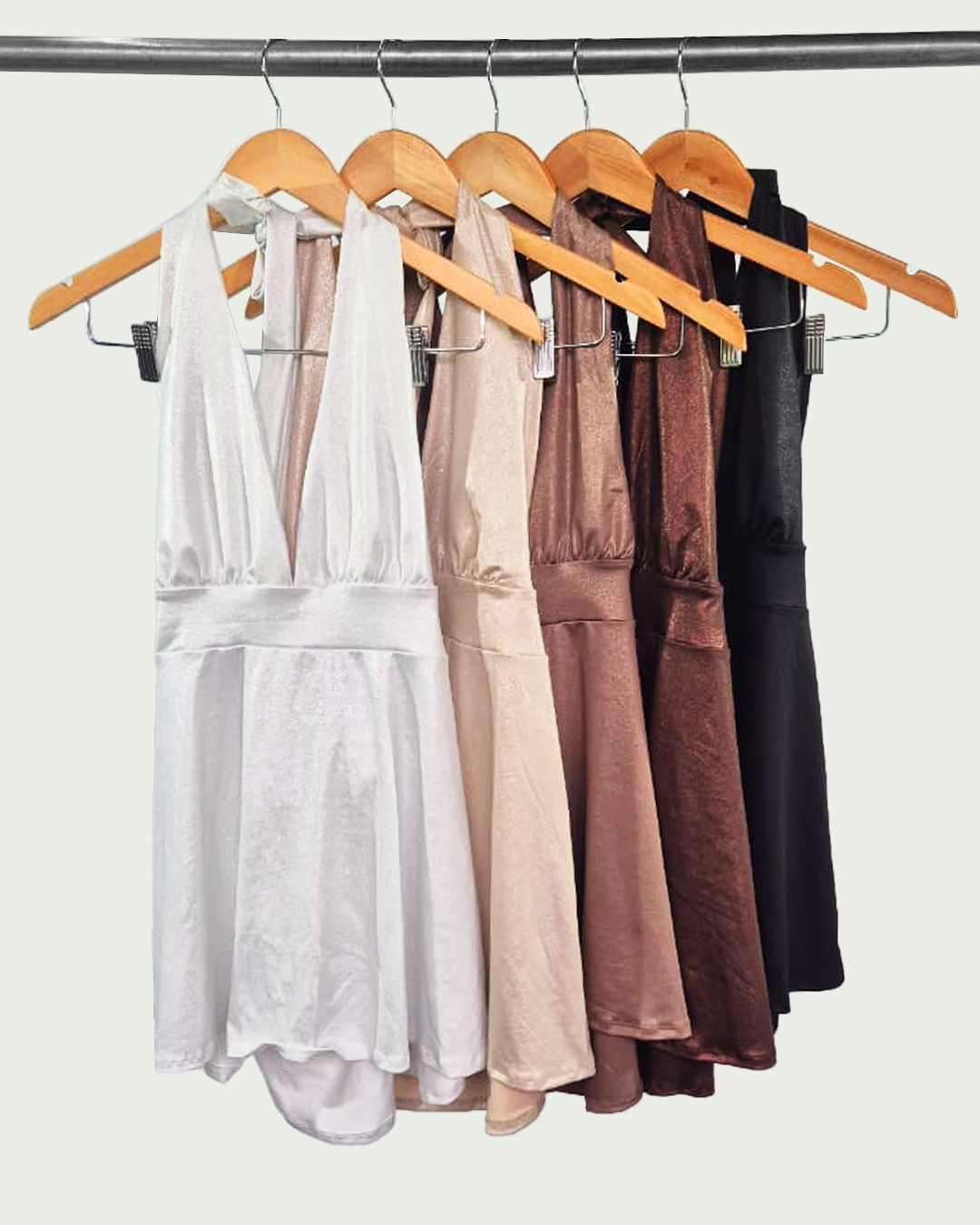 Vestido Microfibra Foil Halter con Tiras