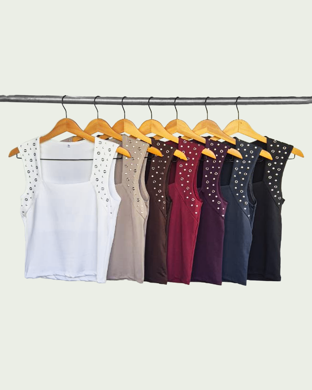 Musculosa Microfibra con Escote Cuadrado y Hotfix
