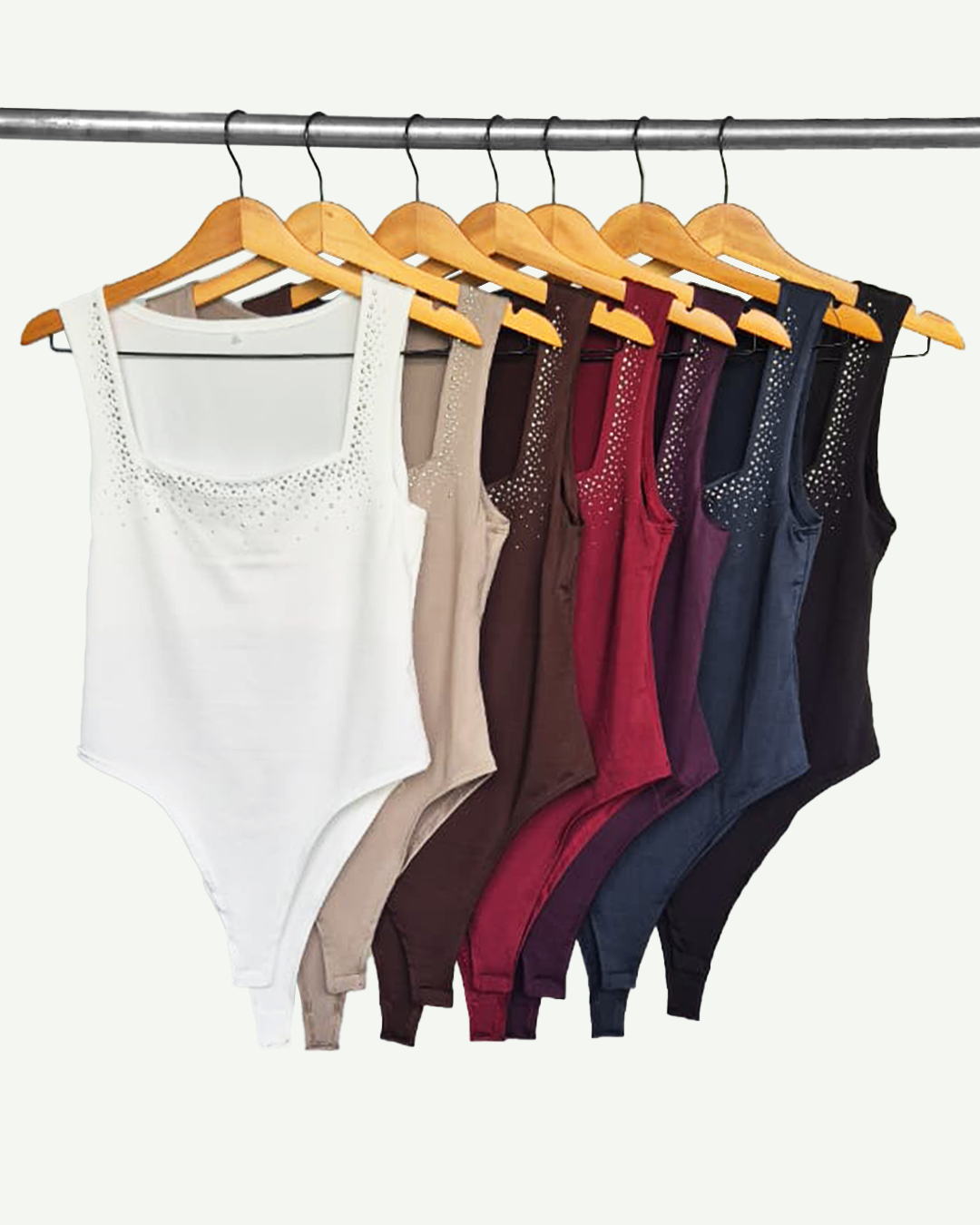 Body Sin Mangas Microfibra con Escote Cuadrado y Hotfix