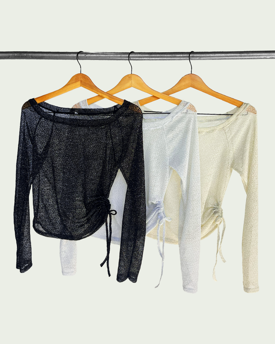 Top Lurex Translúcido con Mangas Largas y Frunce
